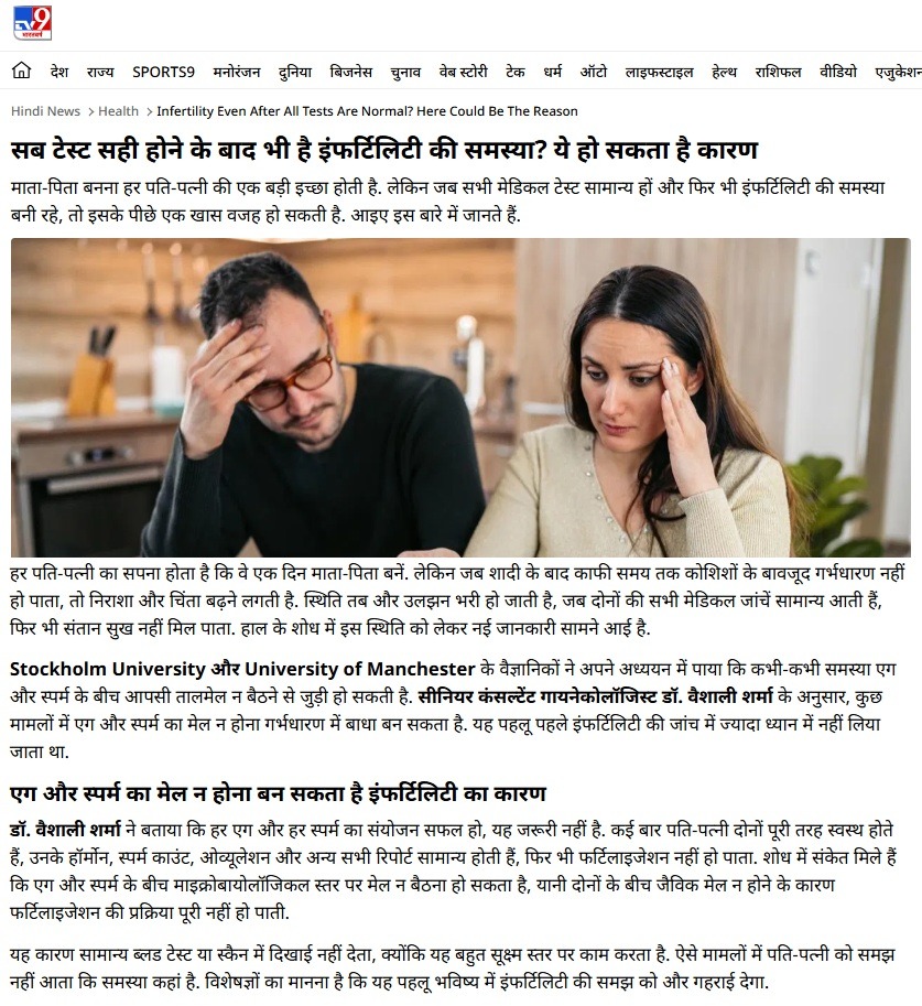 Dr Vaishali Sharma  /  media  /  Dr. Vaishali Sharma in News on TV9Hindi.com